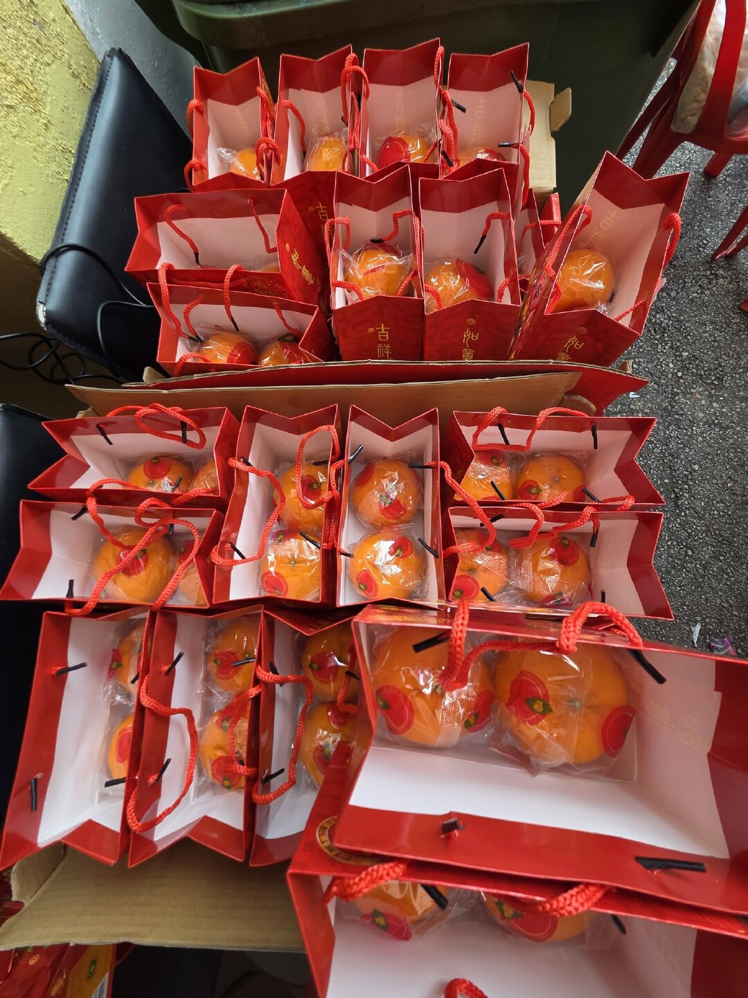 余文貴會長更親自為每一位宗親派發紅包以及一對橘子,