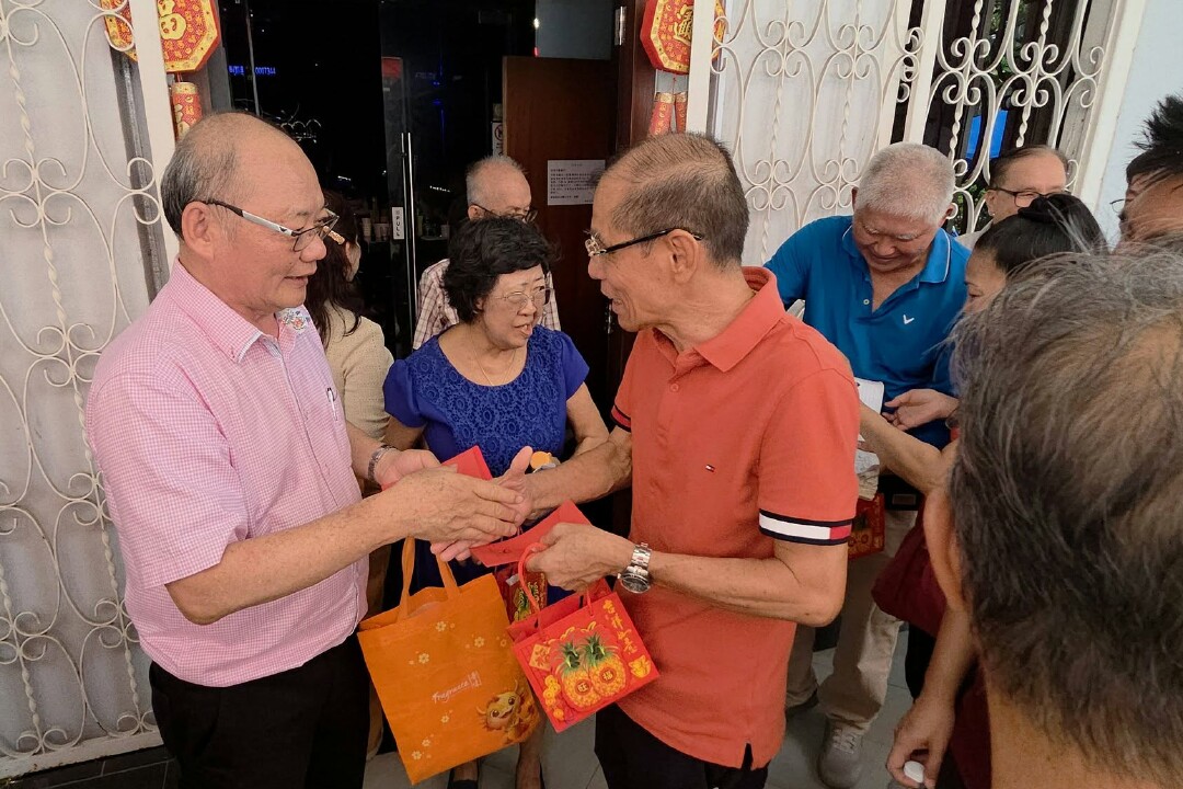 前任主席寵異、新任主席偉健、副主席耀棋祝福各位嬸姆新年快樂,身體健康,一年比一年美麗。