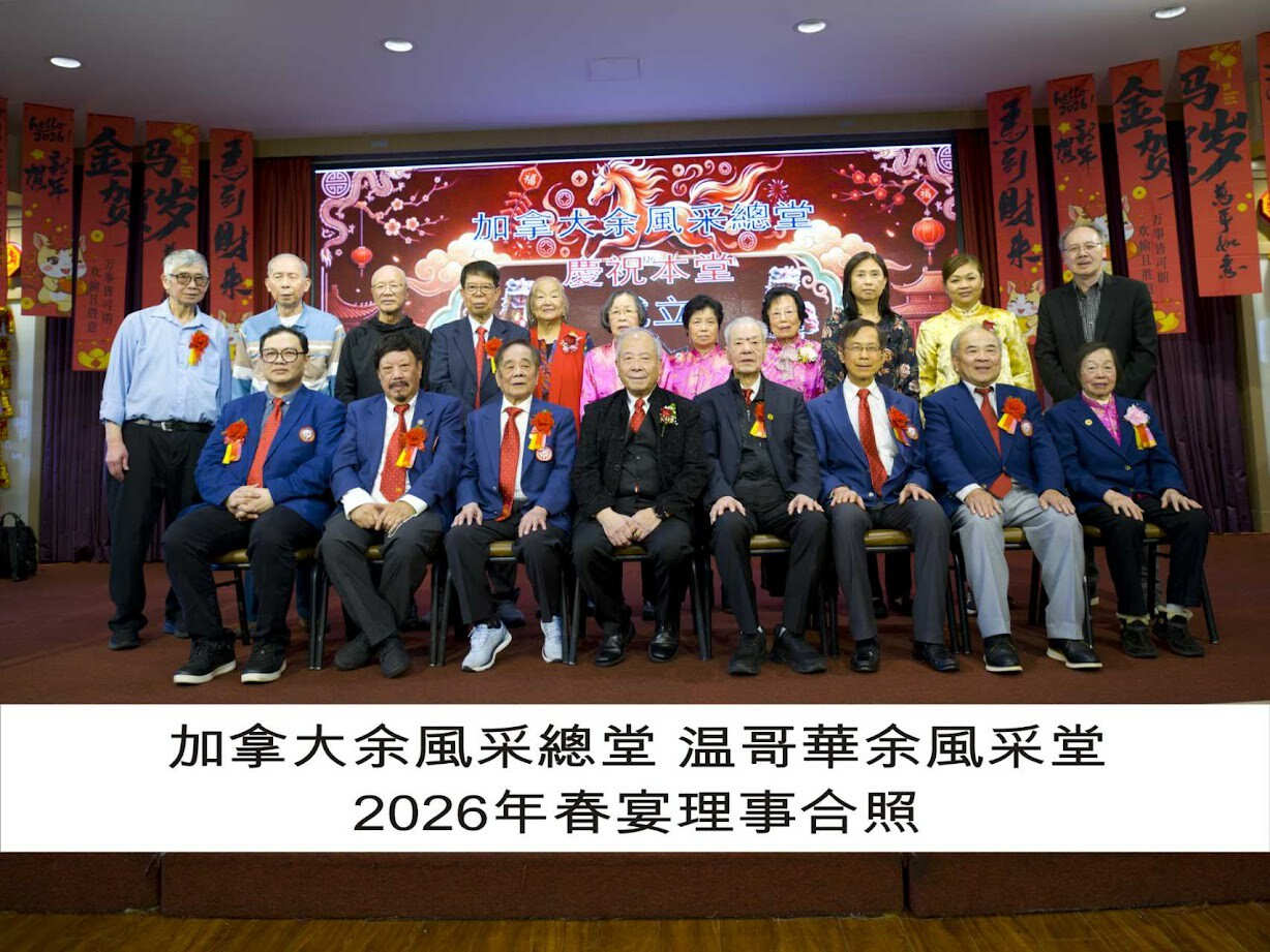 溫哥華余風采堂於一月十一日(星期日)假西湖海鮮酒家舉行新春團拜聚餐,共迎新歲。